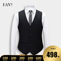 HANY汉尼男士纯羊毛西装马甲西服黑新郎伴郎结婚商务正装英伦马夹
