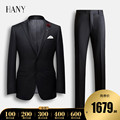 HANY汉尼黑色西服套装男士结婚礼服新郎职业羊毛正装商务修身西装